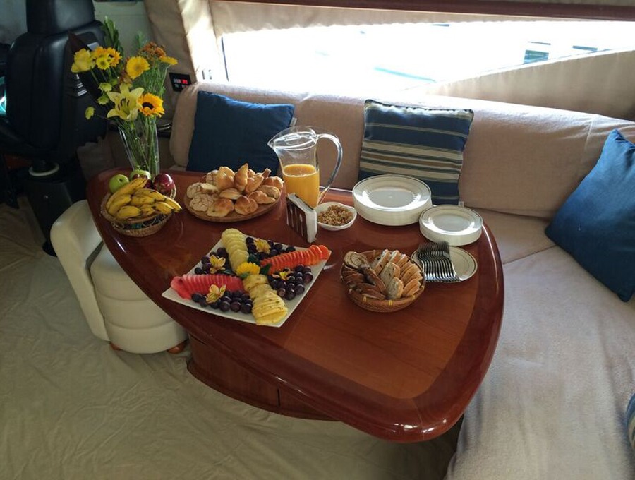 3- On Board Chef who will prepare appetizers (Ceviche & Guacamole), meal (Steak & Chicken Fajitas with Wild Rice & Roasted Veggies).