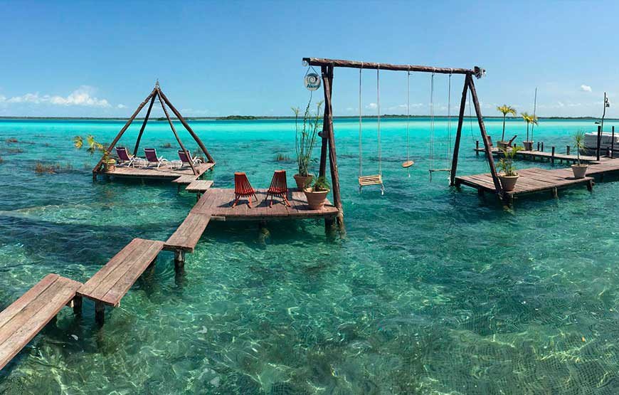· Time to swim in seven colors lagoon of Bacalar and the channel pirates.