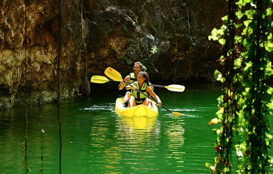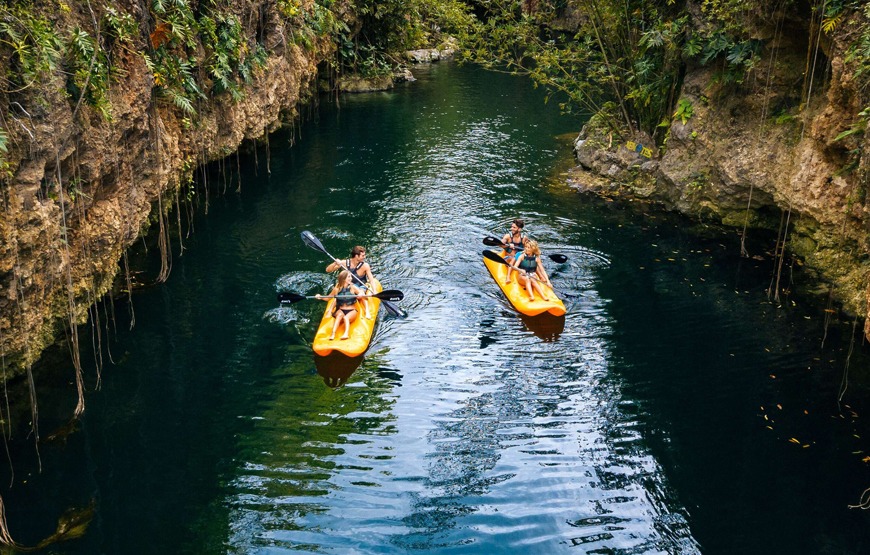 Fill yourself with inspiration born to immerse yourself in the refreshing waters of a semi-open cenote, and observing their underwater gardens. Surround yourself with new landscapes, kayak while paddling between papered walls of hanging gardens.